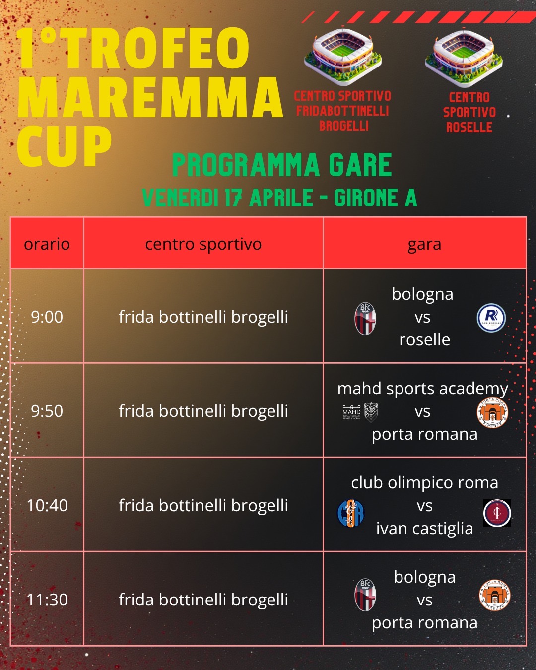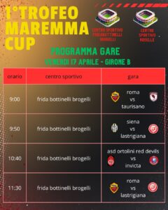 Sono ufficialmente usciti i gironi della Maremma Cup il torneo che vedrà impegnate varie squadre del territorio e non solo dato la presenza di squadre professionistiche e internazionali.