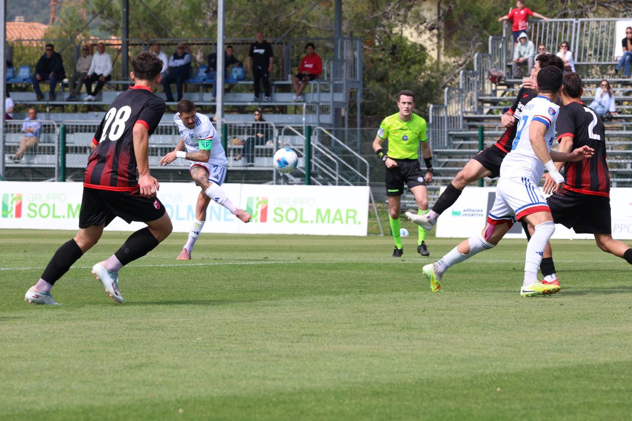 Al 43′ Rinaldini dalla bandierina trova Drapelli, che stacca di testa ma non trova la porta.