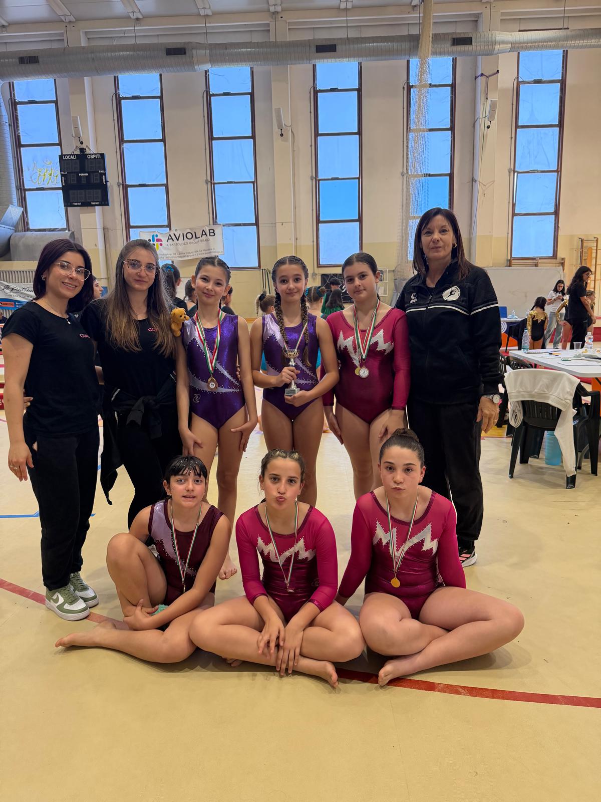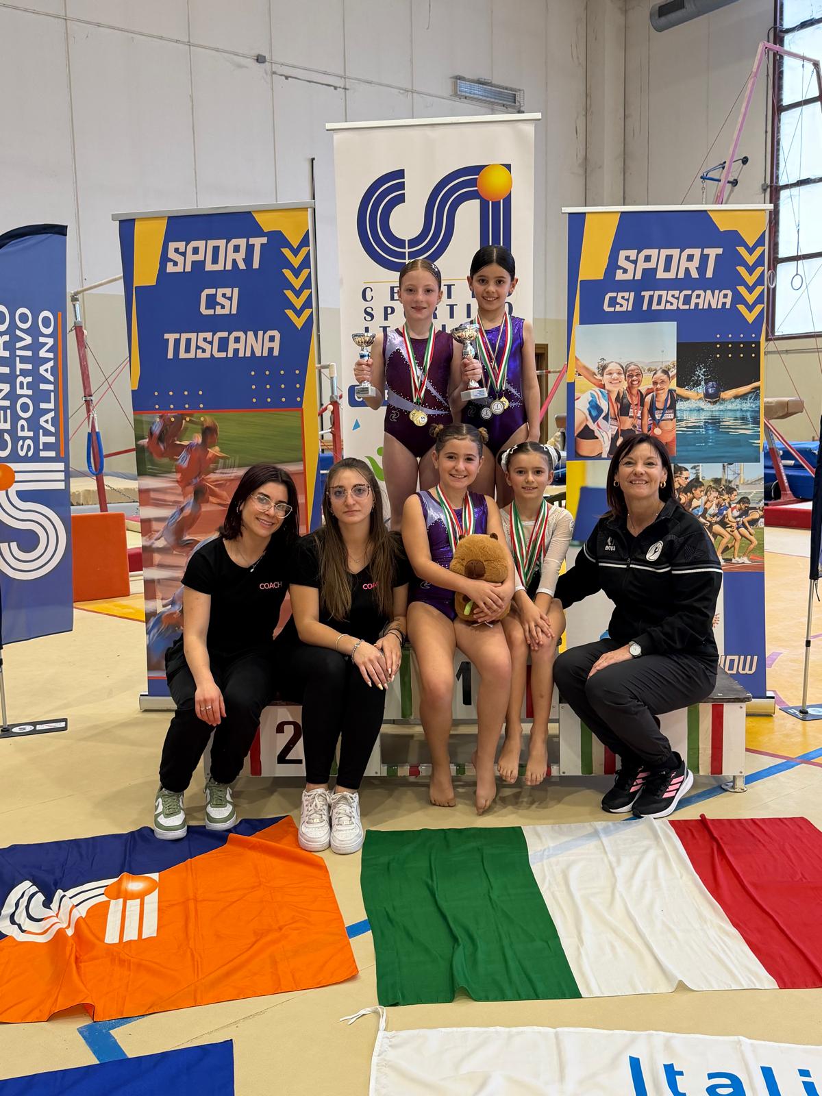 La scorsa Domenica si è tenuta a Rosignano la seconda e ultima tappa del campionato regionale individuale CSI categoria large a cui le atlete della Polisportiva Barbanella Uno del settore promozionale hanno preso parte, portando a casa ottimi risultati. La competizione si svolge su tre attrezzi, ossia trave, corpo libero volteggio, più le specialità minitrampolino e parallele. Tra le più piccole, nella categoria lupette di appena 7 anni, vince la medaglia d’oro al corpo libero e al volteggio Evaluna Mori che conquista anche l’argento alle parallele. Nella categoria tigrotte, medaglia di bronzo nella classifica assoluta del campionato per Cloe Rosa che ottiene anche il primo posto alle parallele. Medaglia d’oro di specialità al corpo libero, invece, per Martina di Marco e alla trave per Cloe Carosi. Passando alla categoria allieve conquista il terzo posto nella classifica assoluta Dafne Tinti, mentre nella gara di specialità bronzo al mini trampolino per Mia Maestripieri e quarto posto per Emilia Cambur al corpo libero. Nella categoria ragazze, terzo posto assoluto per Viola Boselli, bronzo per noemi francalacci al volteggio e quarto posto per Melissa Frosi. Per finire, nella categoria junior vince la medaglia d’oro al volteggio Shaula bacciarelli e ottiene un ottimo quinto posto Sofia Angeli. Le allenatrici Claudia Salvadore e Azzurra Terminali sono orgogliose del lavoro svolto dalle proprie atlete e dei risultati ottenuti che ripagano un lungo anno di impegno e sacrificio e chiudono la stagione in bellezza.