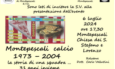 Sabato 6 luglio alle ore 17.30 (nella chiesa dei Santi Stefano e Lorenzo) Montepescali rivive i 31 anni della storia calcistica dell’antico borgo. Tra ricordi, foto,...