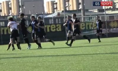 Uno dei due gol messi a segno da Pavin nel match Caldana-Rispescia
